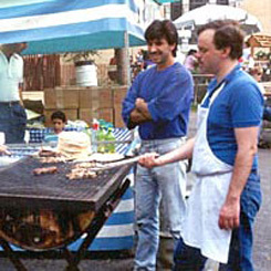 In the early 1970s, the bazaar was moved to a spring weekend and involved the entire Greek community, since the bazaar had grown too large for one organization to operate. In the mid-1970s, bazaar planners decided to emulate St. Anthony's Italian festival, and broadened the bazaar into a multi-day festival, with Greek food, exhibits, carnival games, and live Greek and American music for dancing. To kick off the 1979 festival, TV personality George Savalas was invited to the festival and to sing with the band.
